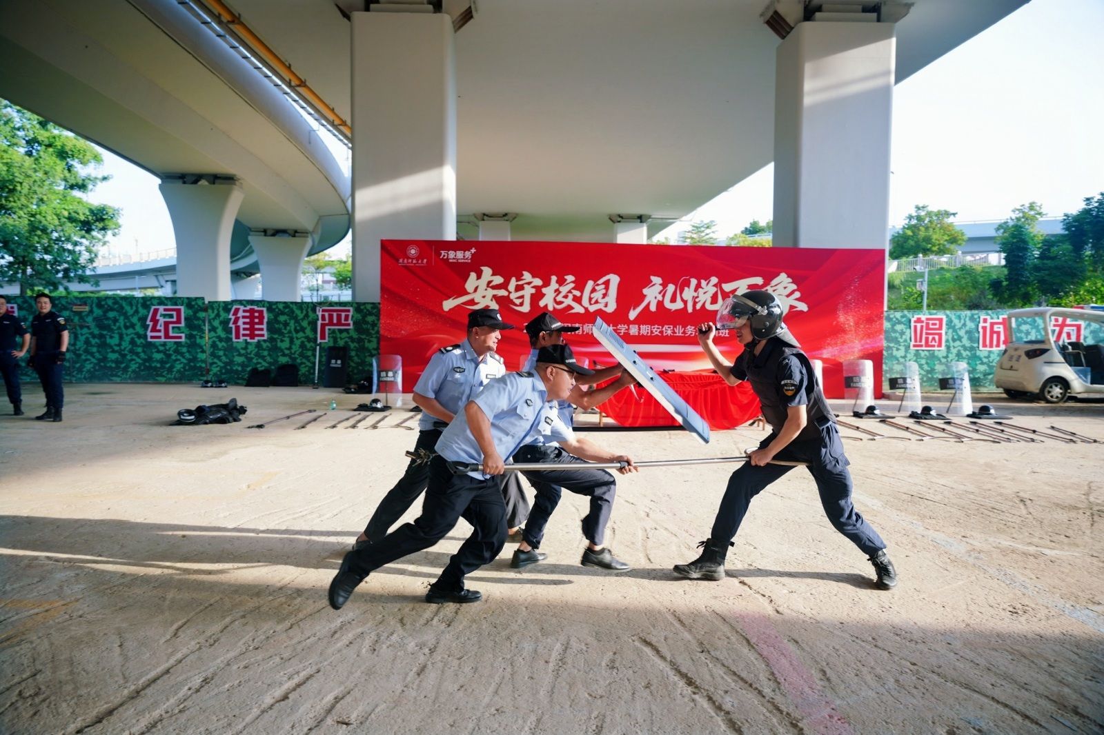 本次培训紧密围绕校园安保核心职责,科学设置课程体系,突出实战导向,将理论学习与实操演练相结合,课程内容涵盖礼仪礼节、岗位6S标准化打造、常见突发事件协同处置和防暴演练等方面。通过模拟真实场景的高强度演练,安保队员们成功将理论知识转化为肌肉记忆,岗位整洁度、工作标准流程和应急处置能力得到显著提升,为应对校园潜在风险积累了宝贵经验。