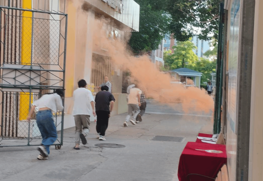 随着第一声警报响起,学生们在工作人员的引导下,弯腰捂鼻,迅速有序地按照消防疏散示意图及路线疏散至聚誉门口喷泉旁空地。班委及时清点人数后向工作人员汇报。