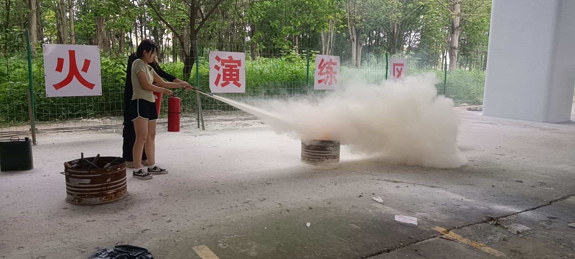 演练结束后,古城消防站副站长叶振雄对本次应急疏散演练进行点评,详细讲解了火灾初期灭火的知识并为大家讲授消防疏散逃生安全知识。在保卫处工作人员的指导下,参与演练的师生学习了常见消防设施的使用方法,并进行了干粉灭火器的实操演练。