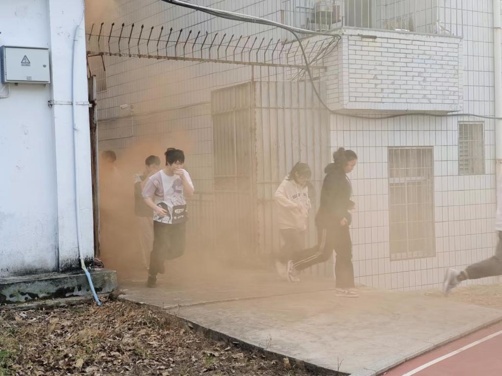 下午3点,伴随着急促的警报声,本次消防疏散演练活动拉开了帷幕。圆山校区内浓烟四起,师生们捂住口鼻,弯腰快走,沿着消防安全通道有条不紊的穿过浓烟区,从宿舍楼和教学楼有序撤离到指定安全集合地,全程安全、快速、高效。