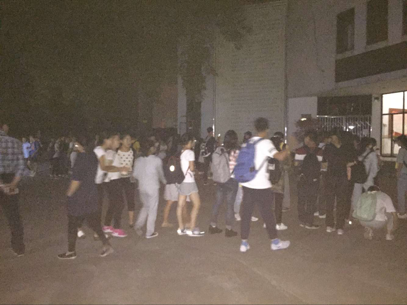 20时50分,各位老师和自律会工作人员迅速到位准备,21时整,随着校园内的一阵哨声,老师和工作人员迅速引导在逸夫楼教室内的学生快速疏散,学生们弯着腰,用手帕捂住口鼻,沿着指定的路线迅速逃离,撤离至艺术楼前,找到自己班级的位置集合,各班排列成两列纵队,由班长和副班长负责点名。每位工作人员认真引导同学们疏散过程注意安全,防止推推搡搡,维持着演练过程的秩序。整个的疏散过程平稳有序。
