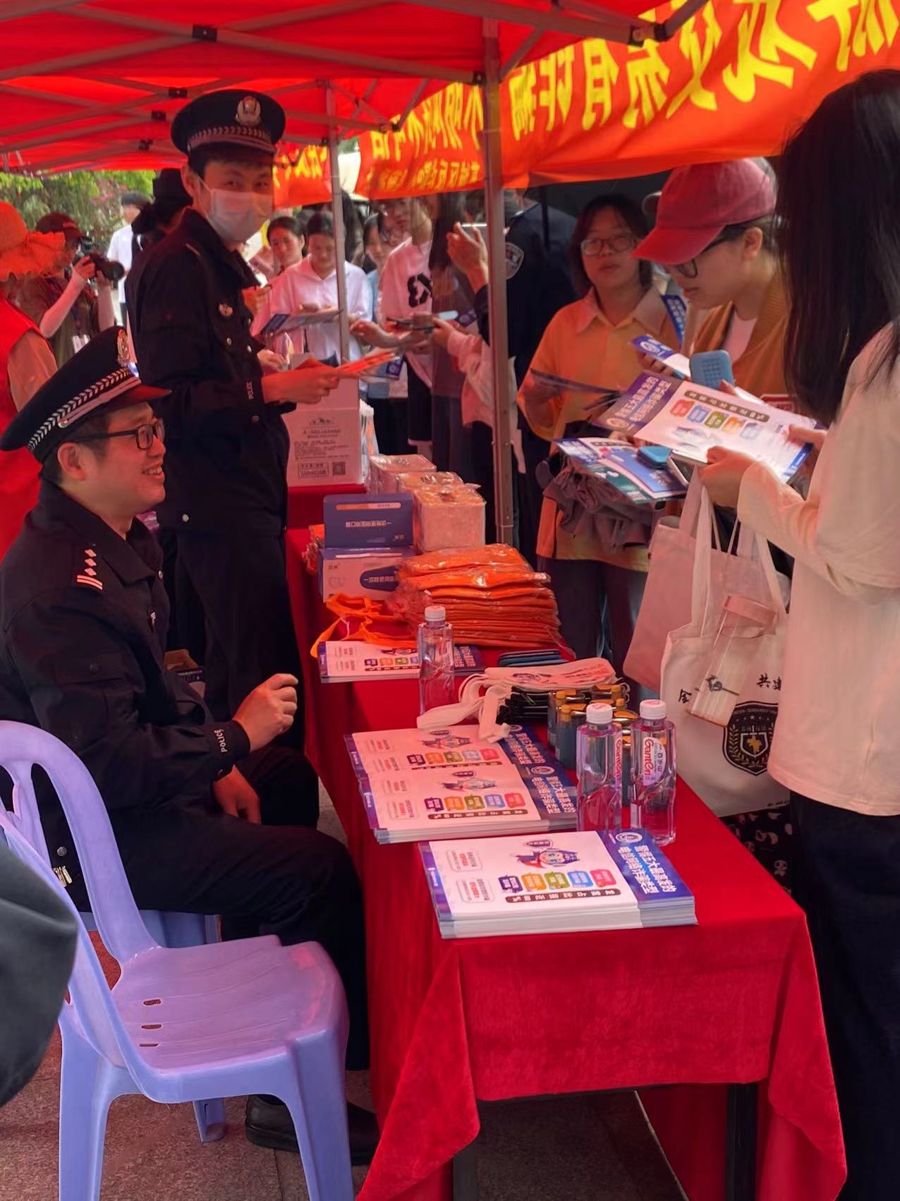 在第八个“4.15全民国家安全教育日”即将到来之际,2023年4月13日下午我处联合校党委宣传部、学生处在达理活动中心前广场开展了一场以“深入贯彻总体国家安全观,增强全民国家安全意识和素养,夯实以新安全格局保障新发展格局的社会基础”为主题的全民国家安全教育日普法宣教活动,活动邀请了漳州市委政法委、市区两级公安机关十个单位近30名民警入校进行面对面宣教。