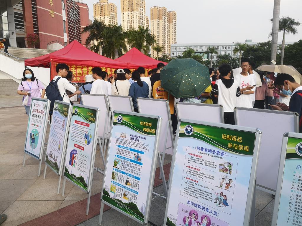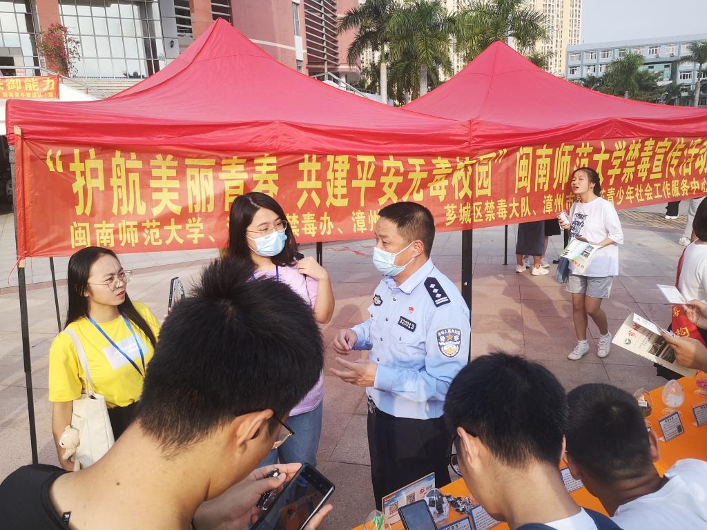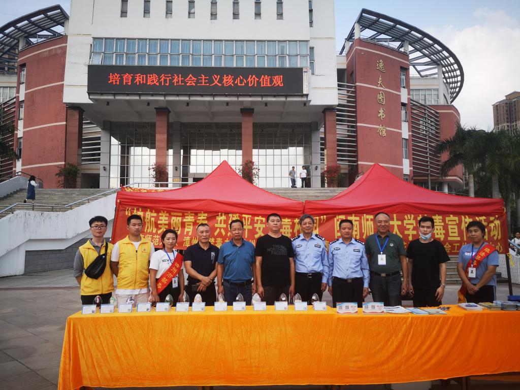 为营造平安无毒的校园环境,11月7日下午,我校与漳州市禁毒办、漳州团市委、芗城区禁毒大队、漳州市鲁冰花青少年社会工作服务中心联合举办的“护航美丽青春 共建平安无毒校园”禁毒宣传活动在弦歌广场举行。
