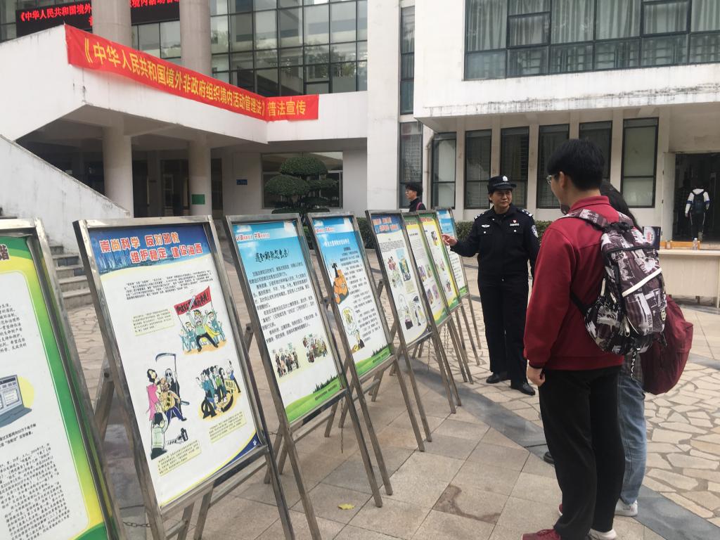 普法活动采用展板展示、张贴横幅、散发宣传单及宣讲等多种形式进行宣传,民警细致讲解,耐心解疑答惑。通过宣传活动的开展,使广大师生员工进一步了解《管理法》相关内容和规定,进一步提高了对境外非政府组织管理工作以及对反邪教、反诈骗和反恐方面的认识,增强师生的安全防范意识,达到了宣传活动的预期目的。